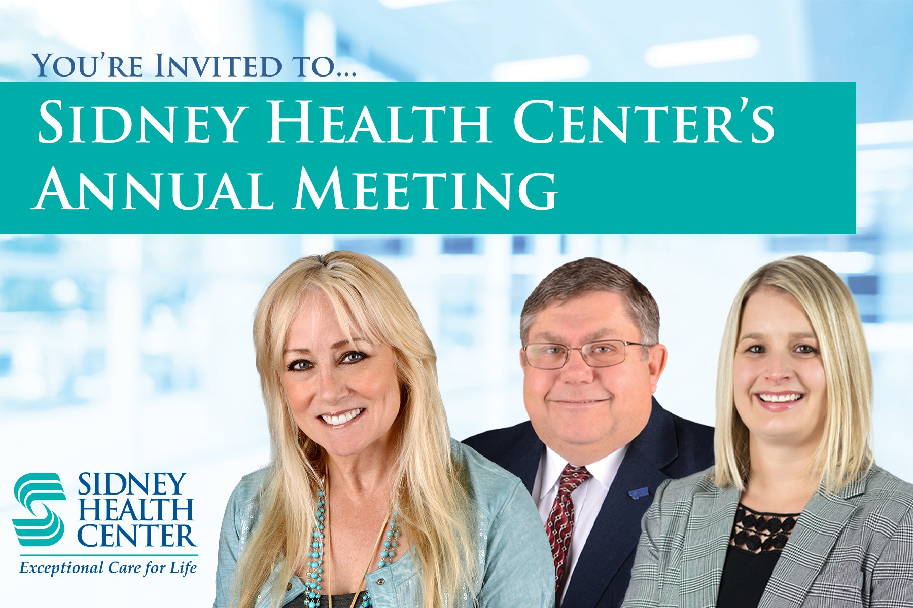 The Sidney Health Center Annual Meeting will be held on Wednesday, November 19th at the Sidney Country Club.